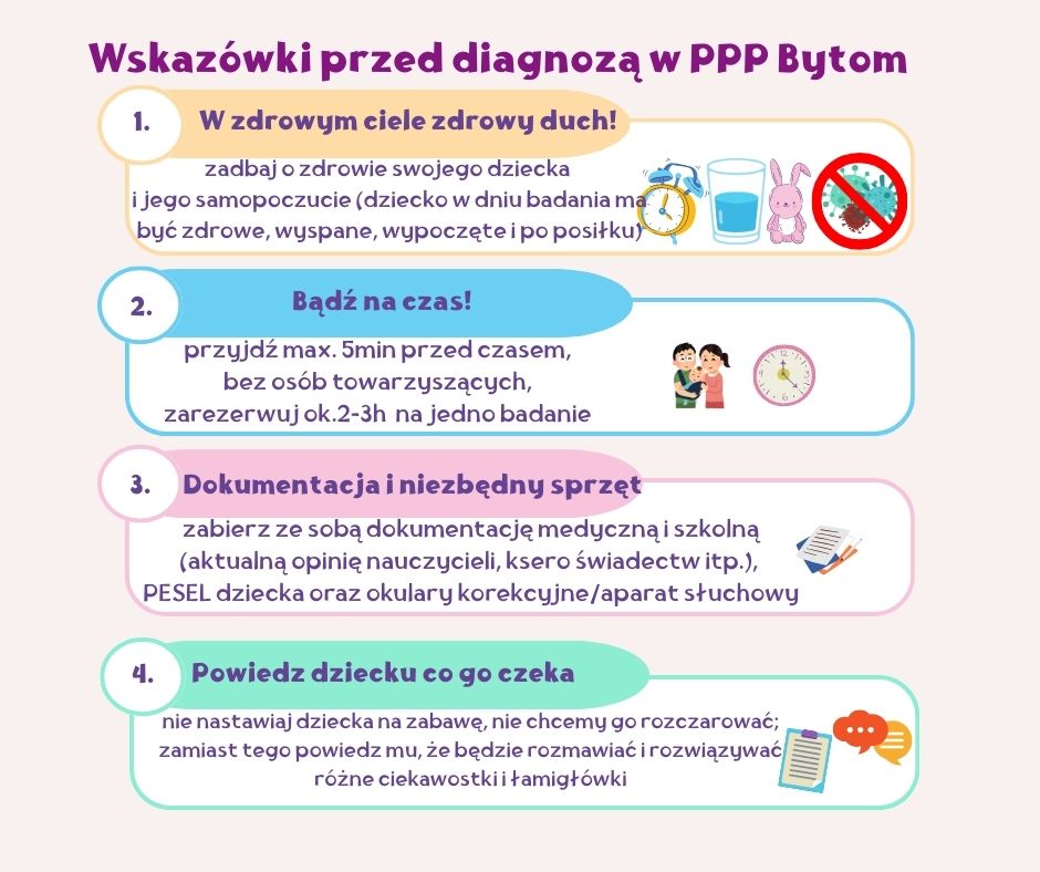 • wszelkie infekcje wykluczają przeprowadzenie diagnozy, dlatego należy zadbać o zdrowie dziecka i w razie jakichkolwiek objawów chorobowych zmienić termin pod numerem: 32 281 94 05,